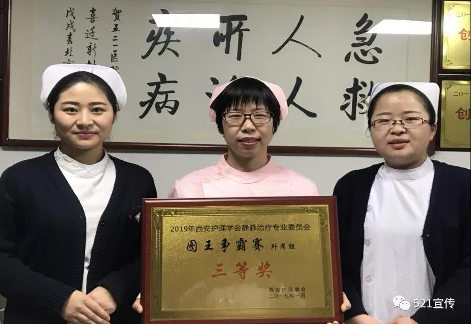 1月26日,西安市护理学会举办的静脉治疗“图王争霸赛”在莲湖区拉开帷幕。郝丹丹、王萌、孙瑞清三名护士代表521医院参加西安市首届静脉治疗知识逐鹿赛,并在比赛中获得三等奖。