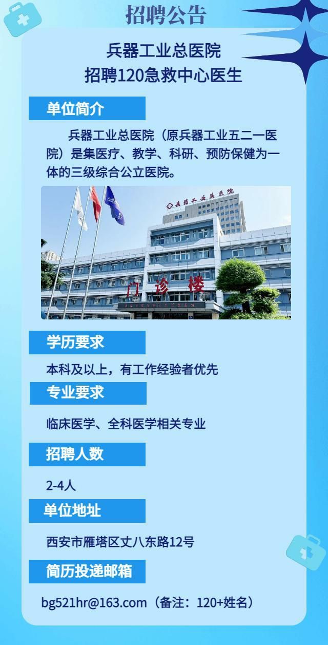 招聘公告:兵器工业总医院招聘120急救中心医生
