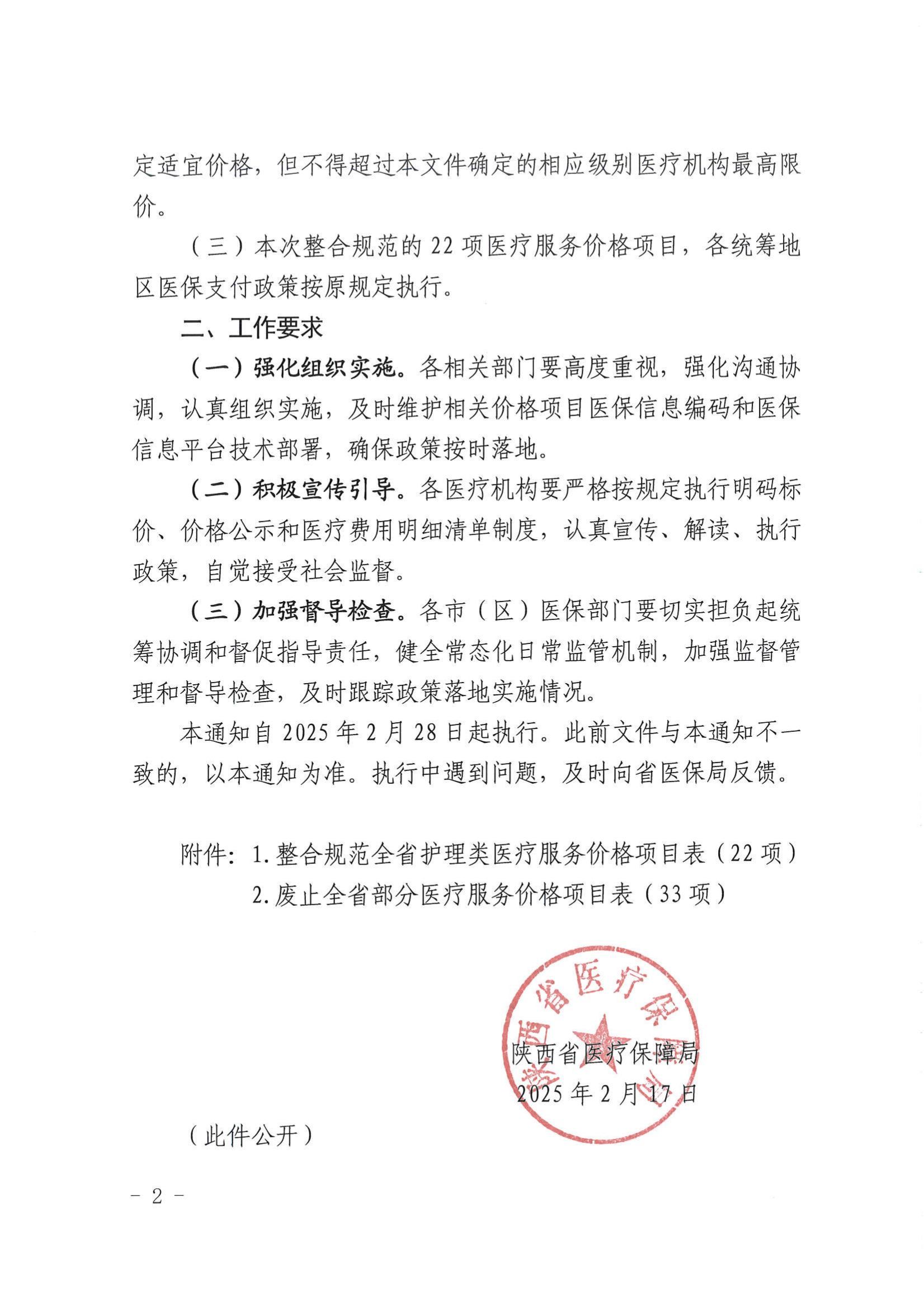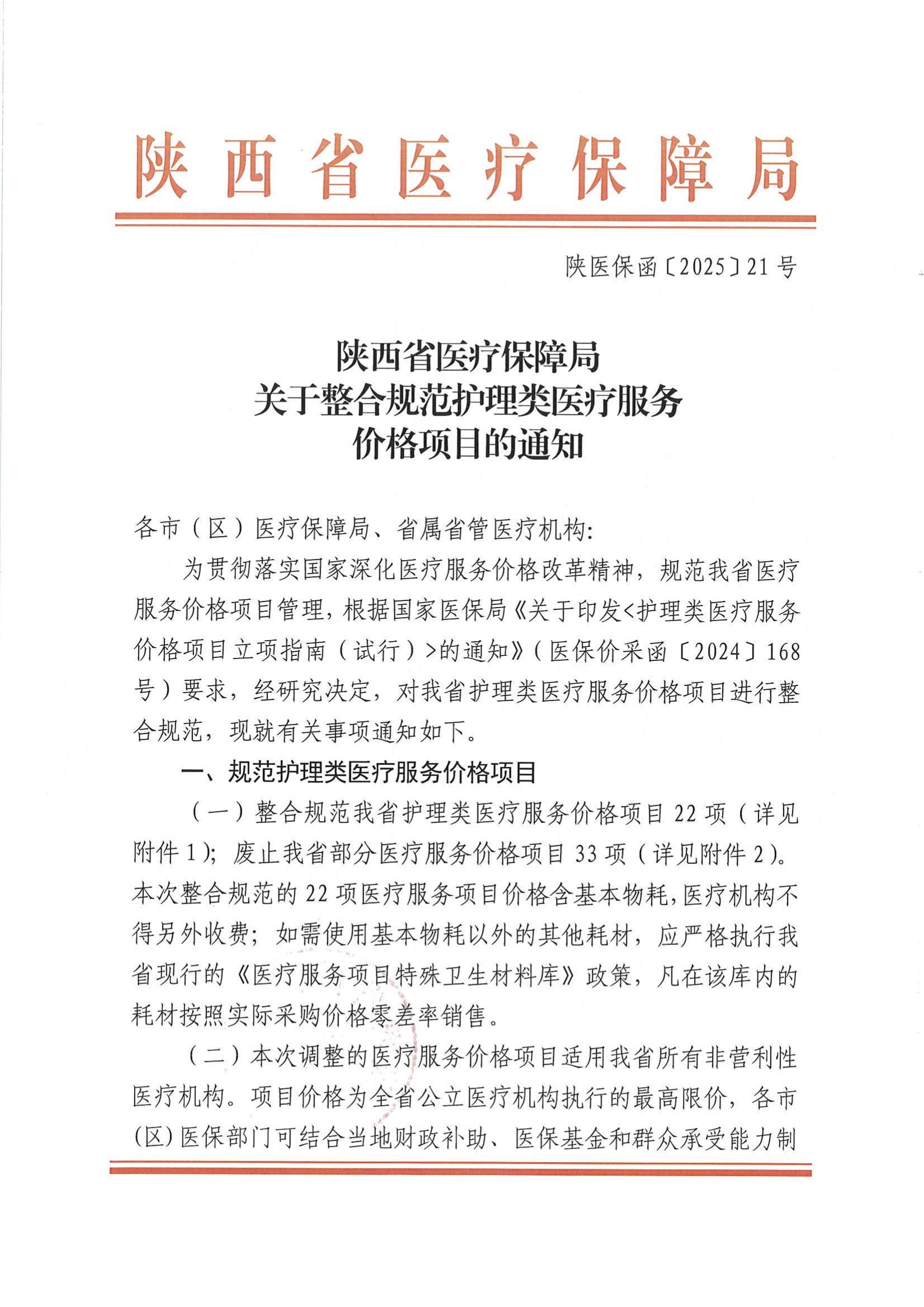 陕西省医疗保障局关于整合规范护理类医疗服务价格项目的通知